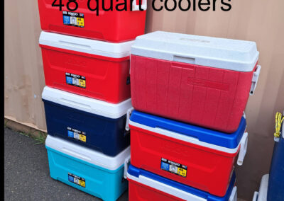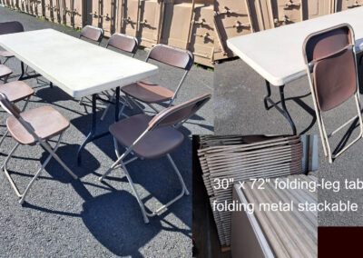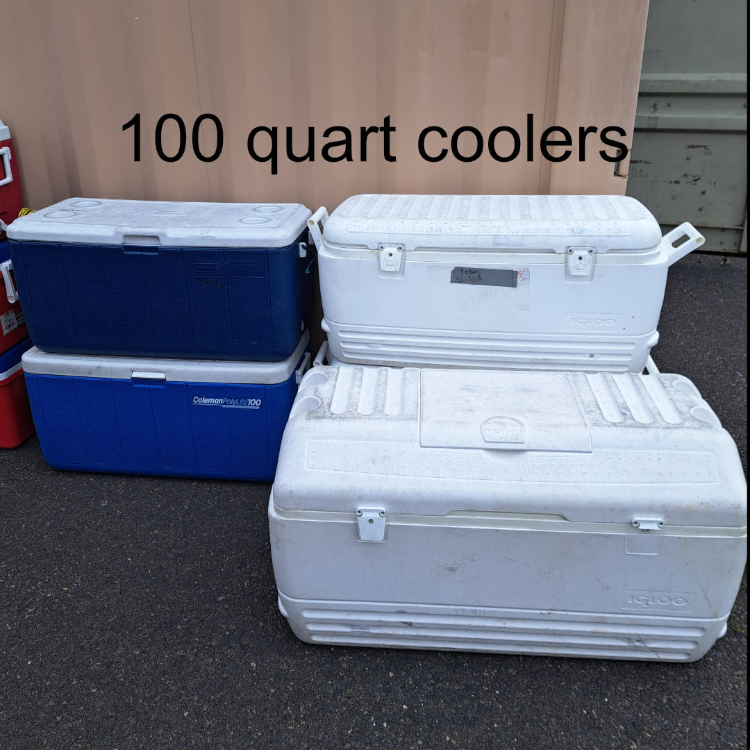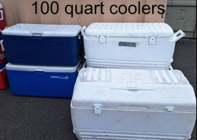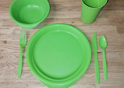 We have 300+ sets of reusable mealware kits by Preserve - plates, bowls, cups and utensils; this makes up the core of our lending library. We also have dining tables and chairs for 300 people, plus 10x10 pop-up canopies, large and small coolers/dispensers, and other equipment.